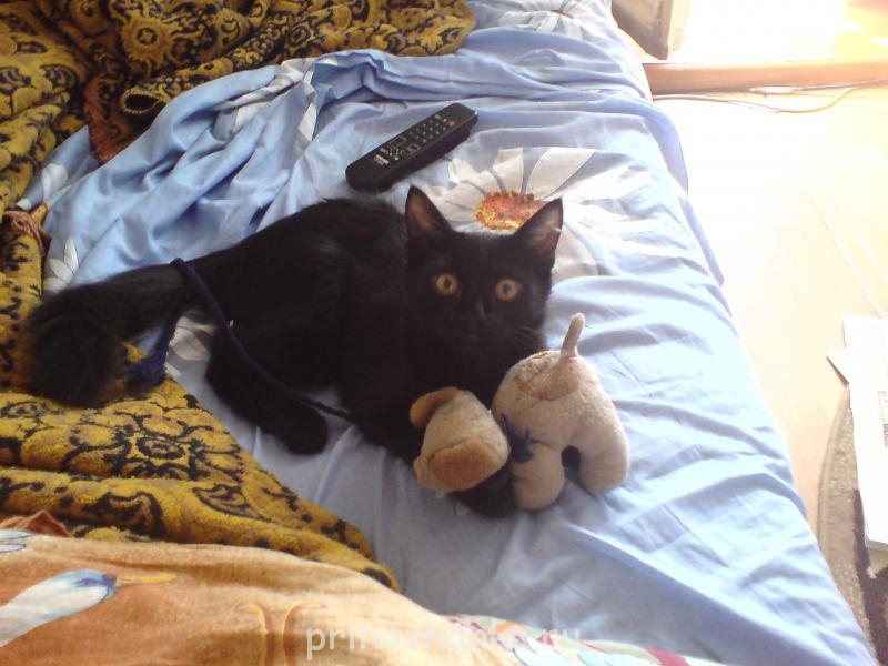 А у меня муж вчера котёночка принёс - на работу подбросили, принёс на время пока не найдут ему хозяев. Такая она маленькая, эта киска, славная, только они с нашим котиком никак пока не подружаться..