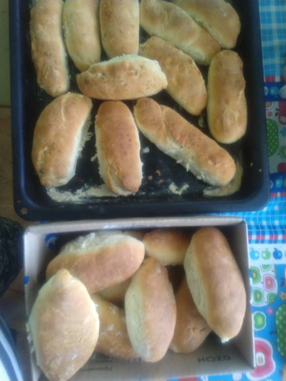 У меня сегодня хлеб из цельнозерновой муки, пирожки с фасолью и рулетики с маком, борщ. А дочь сделала торт из покупных коржей и сметанного крема. Сейчас спагетти отварю.