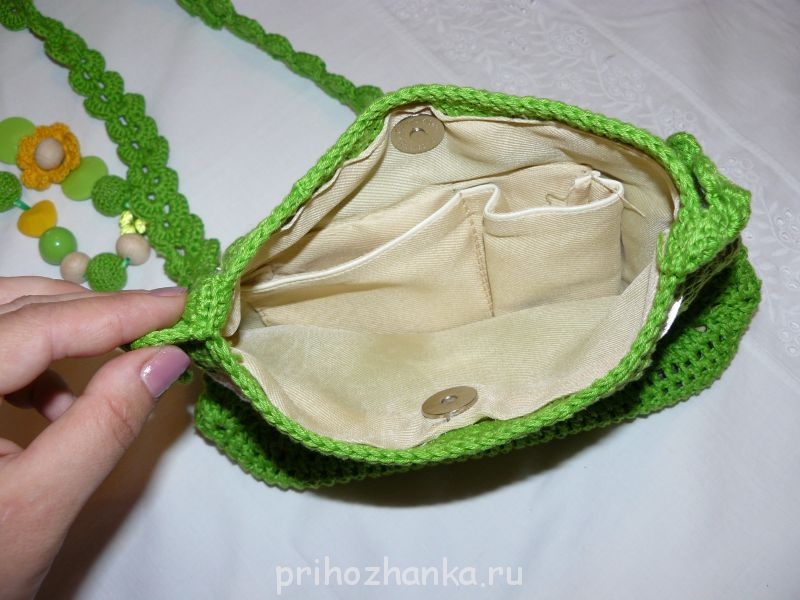 . А как ты там пришьешь внутри руками, ну кому это надо?? Главное чтобы держалось. Я на днях подобную штучку сделала... На подклад брала саржу в цвет вязаной косметичке. Получилось здорово