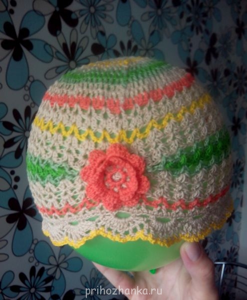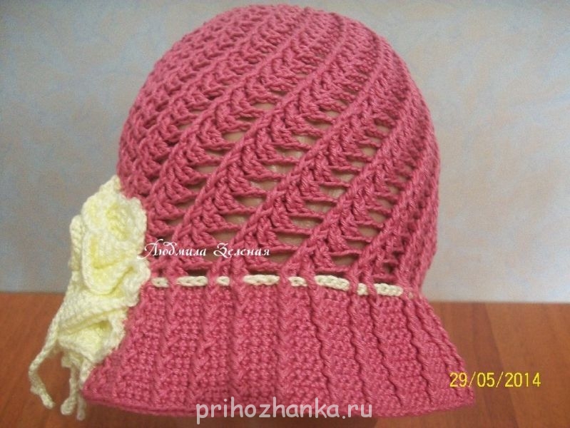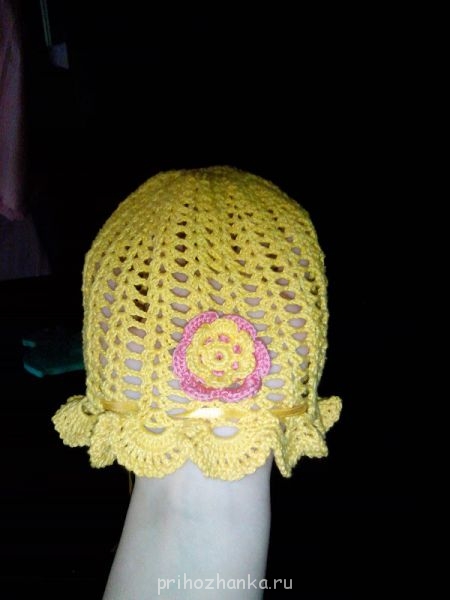 Вот на шапочке розовый цветочек связан из хлопка, двойной мерсеризации, пеликан (Вита, Германия). Так он как проволка, ужас!