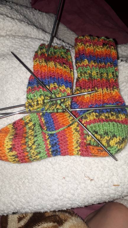 Рукавички вязала мама на четырёх спицах, я пока так не умею