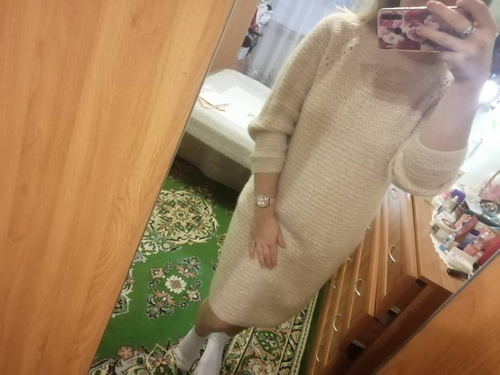 Цветочек, белое платье из недорогой смотки (80% шерсть ягненка и 20 %полиакрил). Ушло всего 600 грамм.
