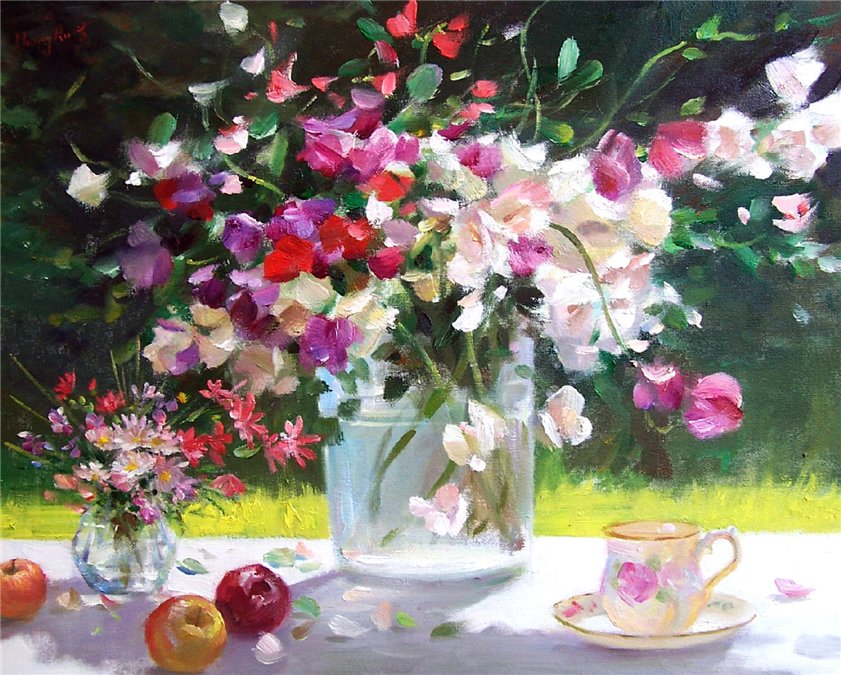 Пахнет мимоза на весь дом. У нас их два букета. И у дочки - больший.