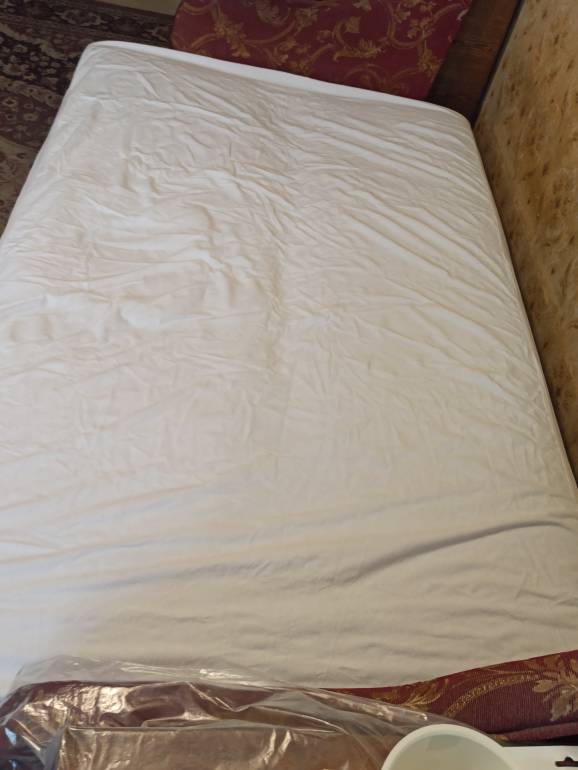Отцу на диван натянула наматрасник новый непрокаемый (подошёл!)
