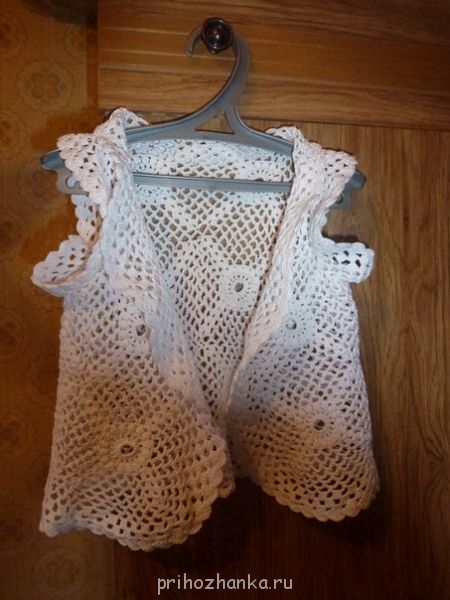 еще я собрала (уже где-то неделю назад) кофточку для Вари из мотивов, которые еще год назад вязала