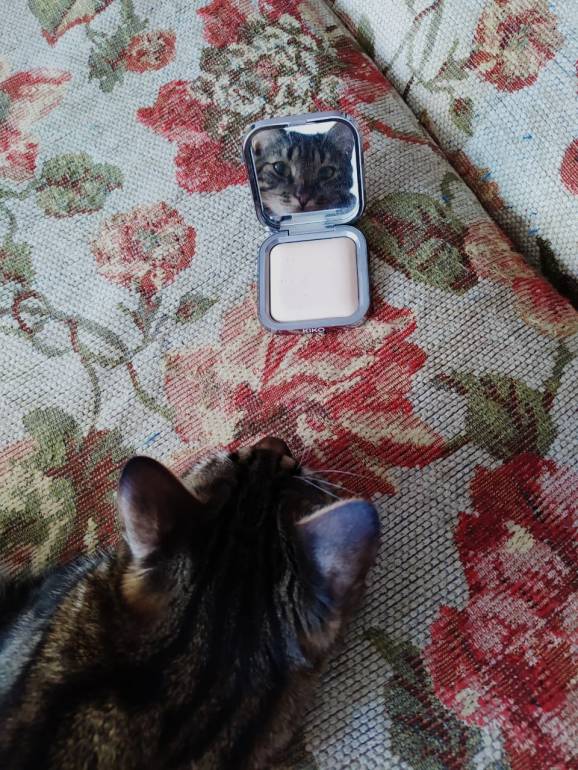 Mimoza, хозяюшка,зеркальце бы побольше котику,а то вся красота не умещается. Кадр бесподобный,котоморда роскошная, так и хочется щечки почесать