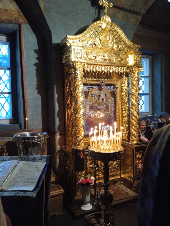 Еду из Новоспасского мужского монастыря. Там икона Божьей Матери Всецарица. Успела на молебен, записала Инночку на месяц.