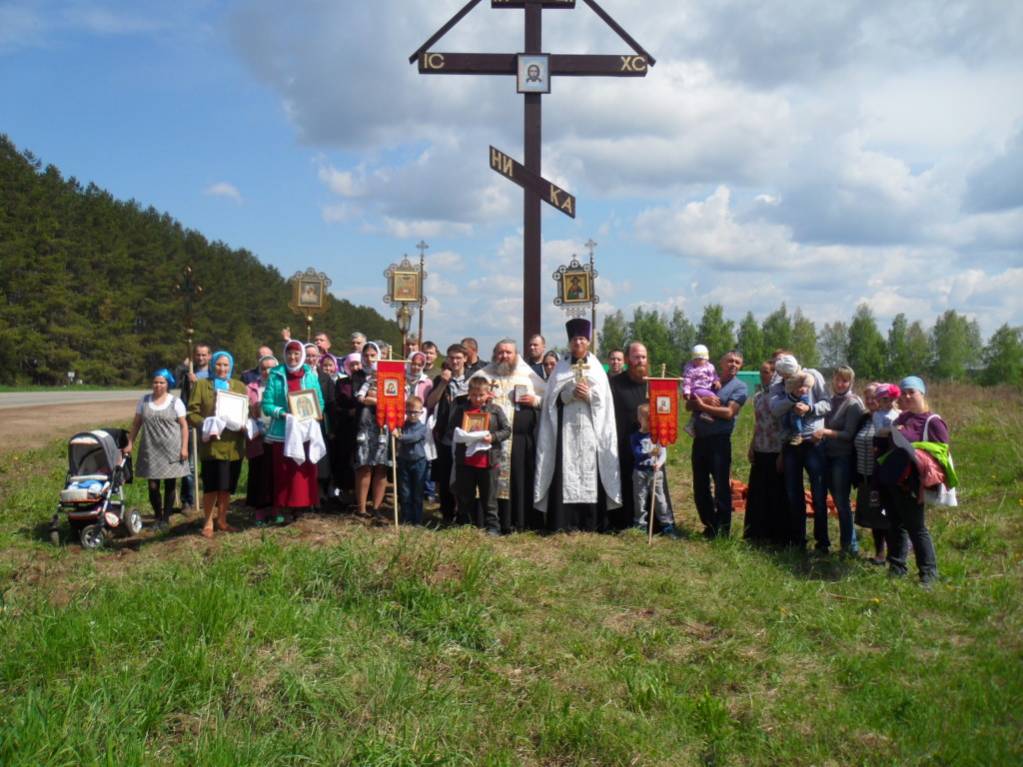 Чин освящения Креста возглавлял настоятель храма иерей Иаков Зайцев. Ему сослужили иерей Сергий Шведов и диакон Владимир Давыдкин. По окончании в торжественном слове отец Иаков поздравил всех присутствующих с этим знаменательным событием и отметил, что населенные пункты, где установлены Кресты на въездах и выездах, освящены особой благодатию Божией. Крест — знамение спасения, знамение победы над диаволом, знамение жизни вечной.