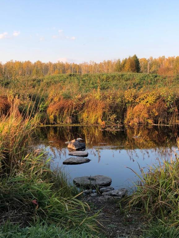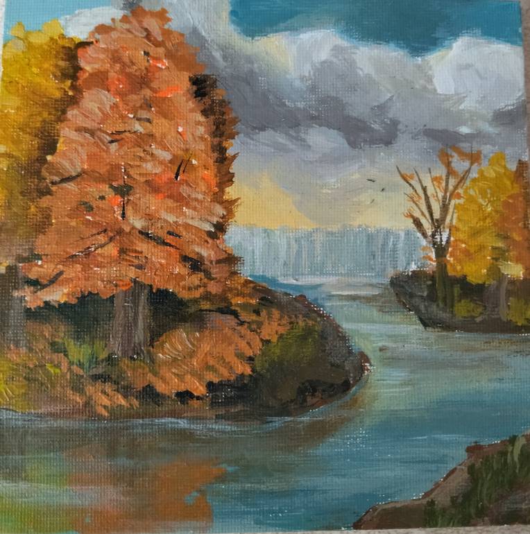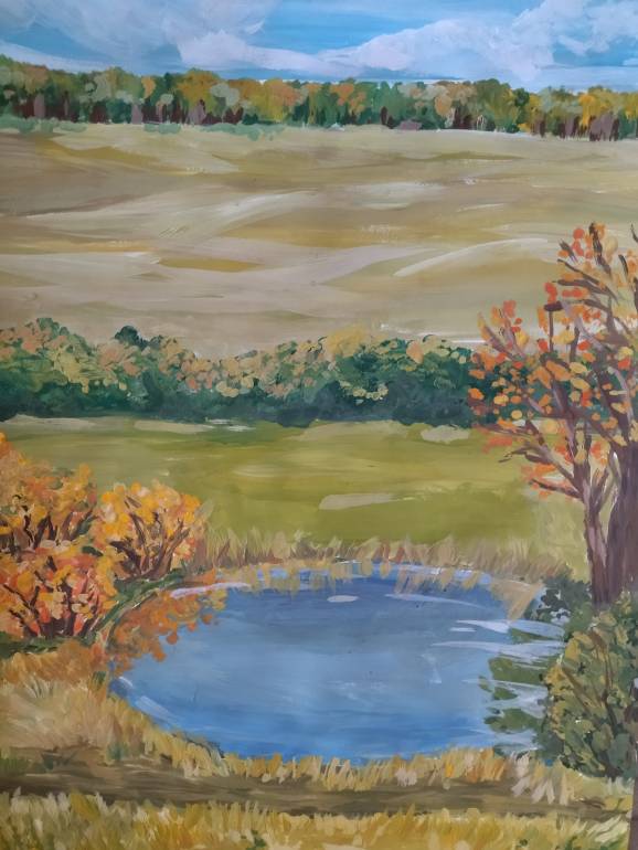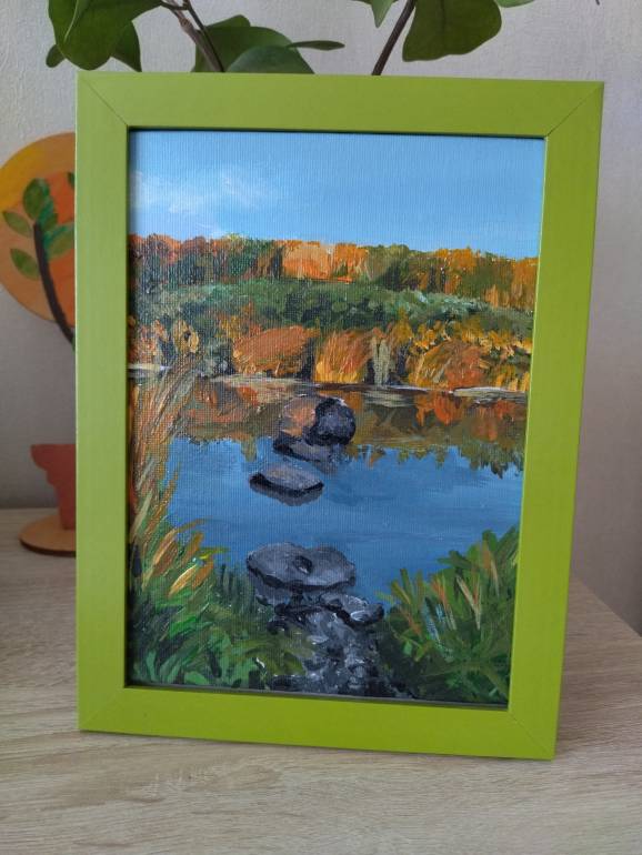 Вот рисовала мне мою деревню- всё наше детство прошло на этом камне, на реке. Сейчас уже всё зарастает, места меняются..
