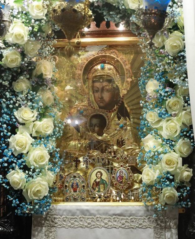 Ее история:Замысел написания этой иконы, принадлежащий преподобному Амвросию Оптинскому, возник у него в последние годы жизни. Будучи обеспокоен судьбой Шамординской женской обители, он молился Божией Матери о покровительстве и заступничестве. В основу эскиза, сделанного им лично, лёг пейзаж окрестностей Шамординского монастыря с парящим над ним образом Богоматери. В 1890 году Амвросий поручил написание иконы иеромонаху Даниилу, родному брату шамординской игуменьи Софии, который был известным академическим живописцем.