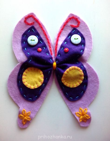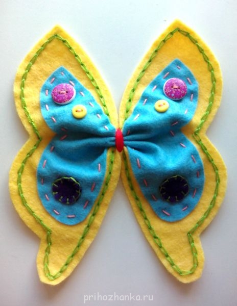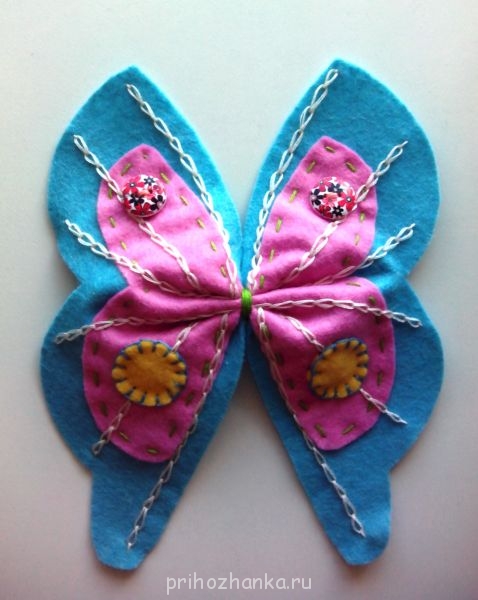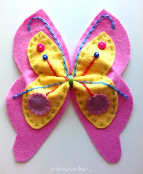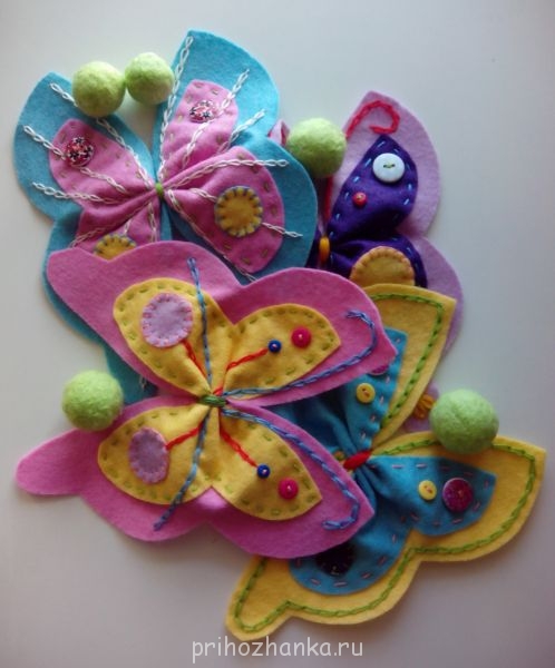 Я, пока лежала в стационаре, нашила из фетра бабочек для мобиля. Шить вручную я не люблю и.... чего уж там , не умею