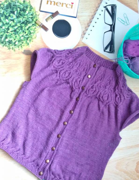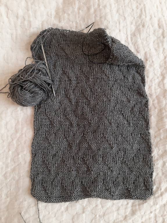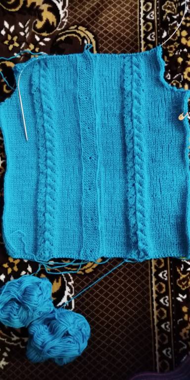 Довязала перед жилета, остались теперь сборка и обработка. Довязала окаты рукавов у джемпера, которые несколько раз перевязывала, но они не получались. А тут вдруг, как наитие какое-то, стала не методом закрытия петель убавлять, а укороченными рядами вязать, и всё получилось так, как я хотела.