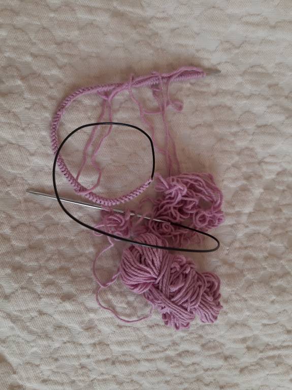 Еще начала в субботу дочке младшей шапочку коттон/меринос- весеннюю..провязала сантиметра три, даже с жаккардом(а эта пряжа не слишком удобна для жаккарда)- померяла- мааленькая..распустила..набрала заново петли..наверное, тоже буду с теневым рисунком, ибо жаккард тут не слишком хорошо выходит (у меня, во вс.случае)