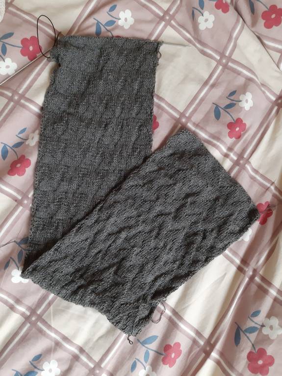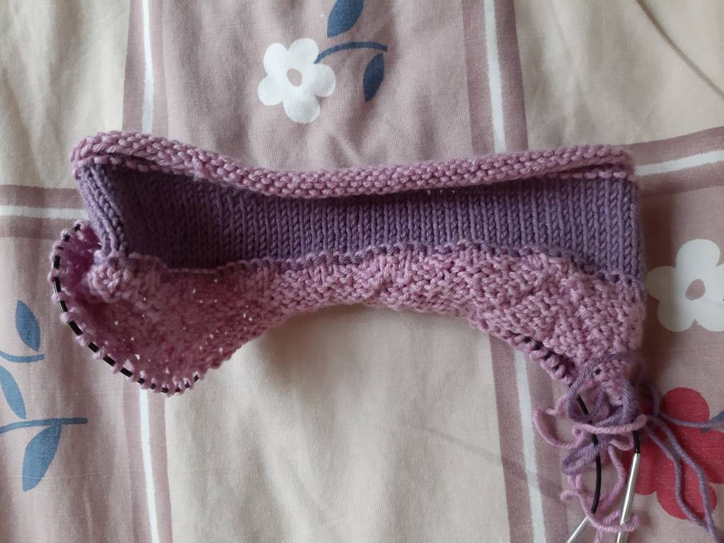 Чтото меня потянуло на теневые узоры..в шапочке типа сердечки, но пока не сильно видно..распускать уже не буду- как будет так и будет.