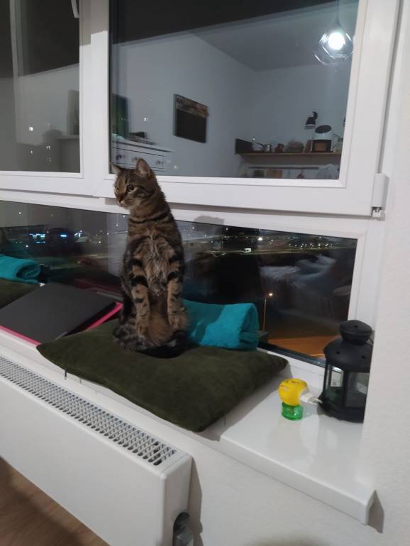 Вчера сидел на подоконнике, созерцал ночной пейзаж. И вдруг в полночь запищали часы мужа....