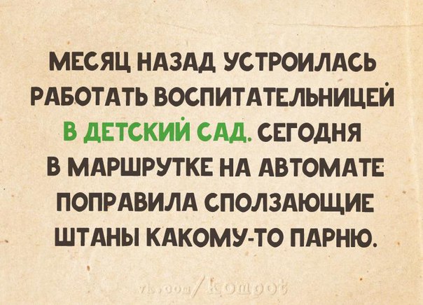 насчёт штанов - я реально так один раз, когда мальчишки были маленькие, своему мужу, подошедшему ко мне, чтобы что-то сказать, взялась футболку в штаны заправлять - просто на автомате.