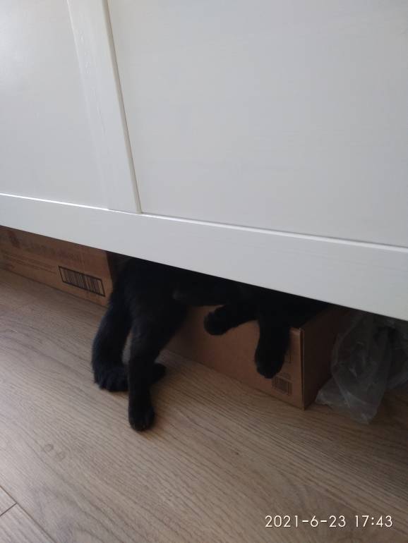 Очень тяжело жару наши котики переживают. Целый день под кроватью с разных сторон прячутся. Сегодня удалось сфотать.