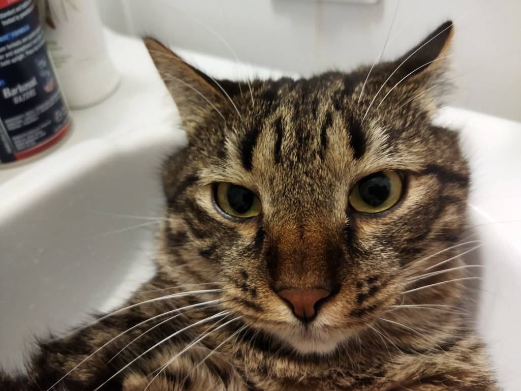 Обычно это реакция котиков на внешний раздражитель. В нашем случае, похоже, я его раздражаю больше всех.