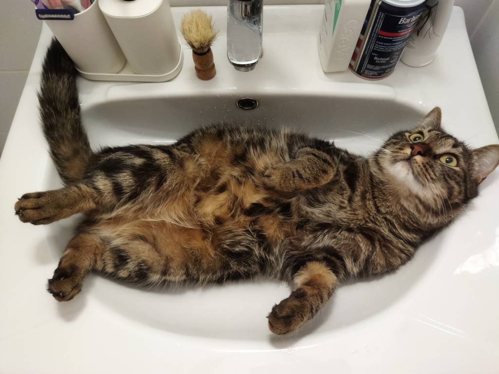 Наш кабанчик уже еле в раковину помещается. Каждое утро в ней находим.
