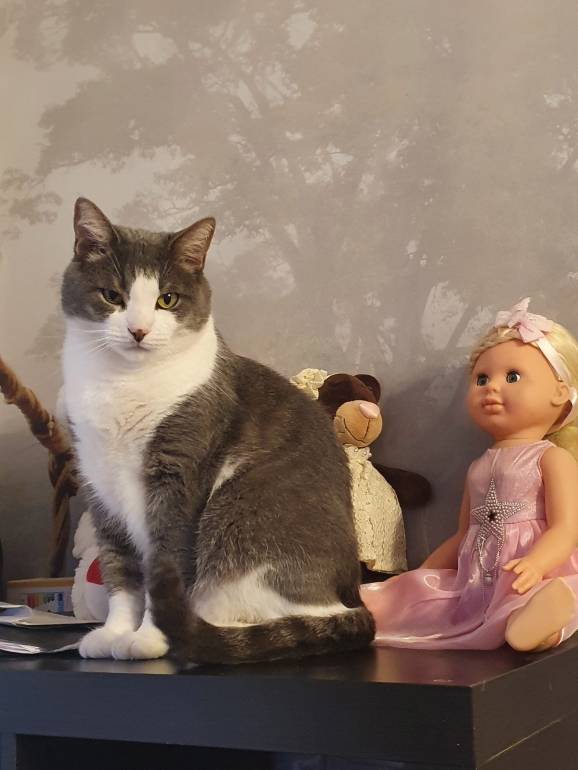 Я его изначально пристраивать хотела, но к нему очень прикипела Лиза. Так и остался он у нас на правах фелинотерапевта. Деткам полезно гладить кошек , когда проблемы с речью.
