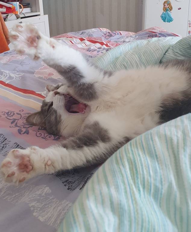 Он еще и беспроблемный практический, мебель не дерет, ничего не портит, ходит в основном в лоток, не царапучий, не болел ни разу, кушает хорошо.