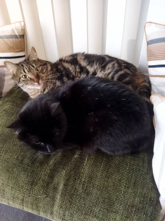 Муся моя так и живет в подвале. Соседская бабушка кормит.Сейчас еще подбросили такую же молодую кошечку, Соня. Раньше Сонька Мусю гоняла, сейчас смотрю, рядом на скамейке спят. Подружки.