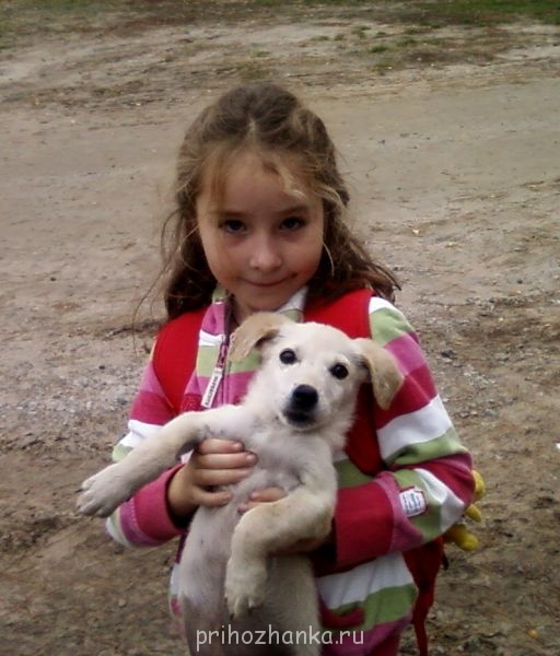 Это наш пёсик. Его кто-то привёз на край села и оставил. А Полька, старшая дочка, привела его домой. Теперь у нас есть охрана.