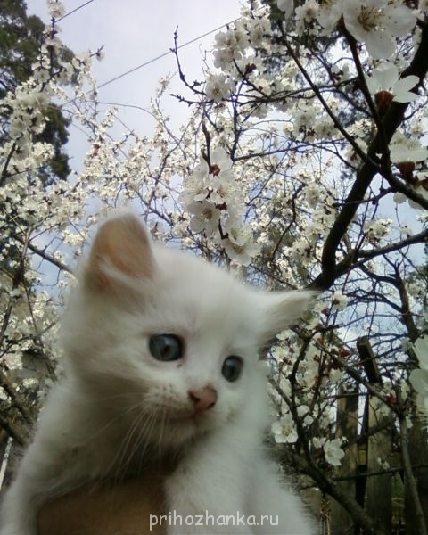 А наша Рыжуля привела нам четырёх белых котят.