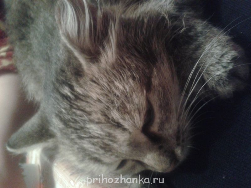 Но она оказалась такая классная - позволяла малому таскать её как угодно, ни разу не поцарапала ни меня, ни ребенка, любит мыться в тазике - их надо купать раз в неделю минимум (специальный шампунь нужен, но я пару раз мыла просто детским), когти позволяет стричь без проблем, ни мебель, ни стены не царапала, к горшку никаких претензий - просто мечта! А, да, еще уход за глазами нужен, так как ресниц у них нету пыль и соринки попадают - нужно обрабатывать глазки спец.раствором - тоже без проблем давала это делать. Ну, в итоге, у меня никакой реакции на кошку небыло, а вот Костик стал задыхаться. Ходили-ходили мы к врачам и решили, что у него аллергия видимо на кошкину слюну или на туалет. Пробы аллергические нам делать не стали, сказали что до 3-х лет они не информативны.И вот пришлось её отвезти к бабушке в качестве эксперимента. Ребёнок перестал задыхаться, значит всё-таки аллергия на кошкины выделения. Так жалко! Бабушка осталась очень довольна