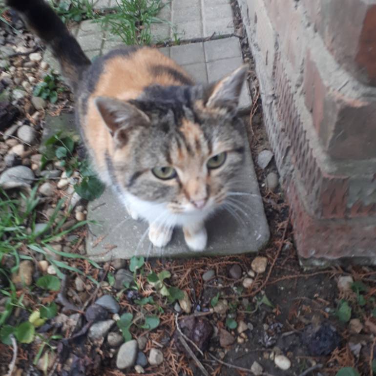 осталась с папой в доме, ей одной хорошо. Ходит теперь везде толстая и довольная. Мышкует. Хозяйка .
