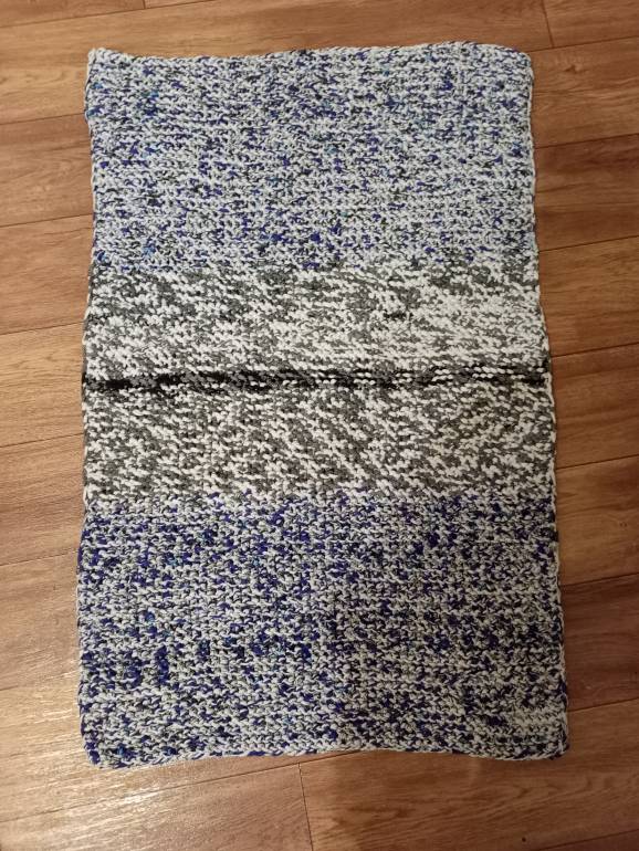 У меня коврик в ванную комнату. Он большой, спицами из трикотажной пряжи.