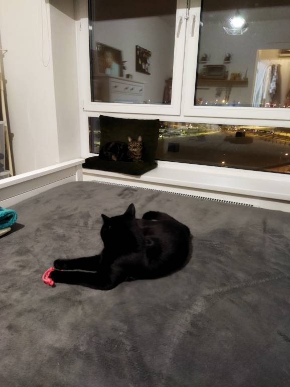 Серёга у нас молчун, Максик разговорчивый и очень активный - вместе носятся по квартире, потом дрыхнут весь день. Надо отметить, что ночью они тоже спят.