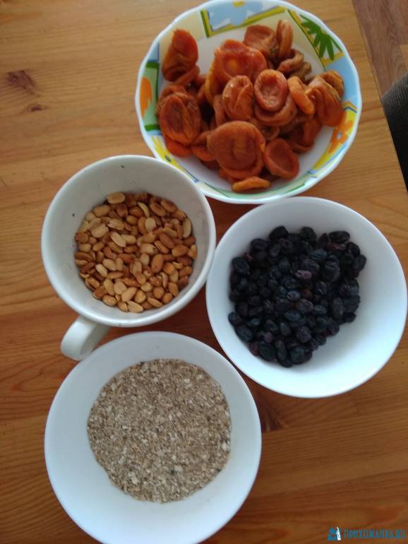 Татьянушка, курага, изюм, арахис, поджаренные овсяные хлопья.