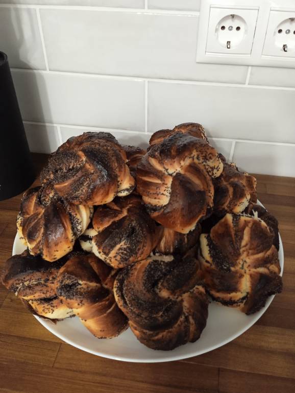 Сегодня покормила закваску, а из остатков вкуснючих пышек нажарила - весь день ими и питаюсь. Хорошо!