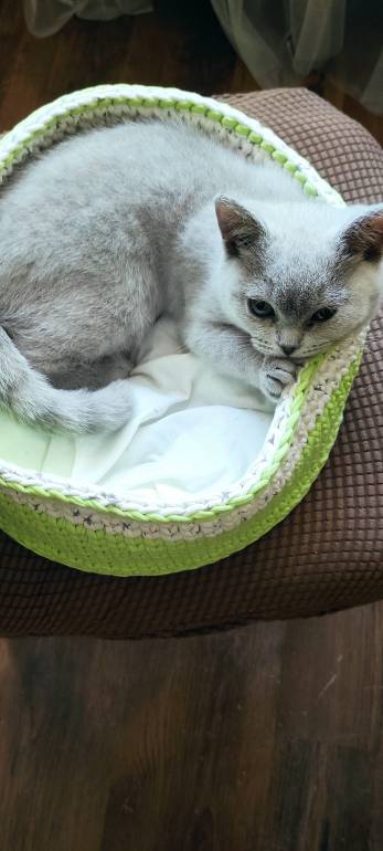 У нас новый член семьи, кот без имени. Дети притащили. Он вислоухий с коротким хвостом. Кушает хорошо, в лоток сразу пошел. Ласковый очень.