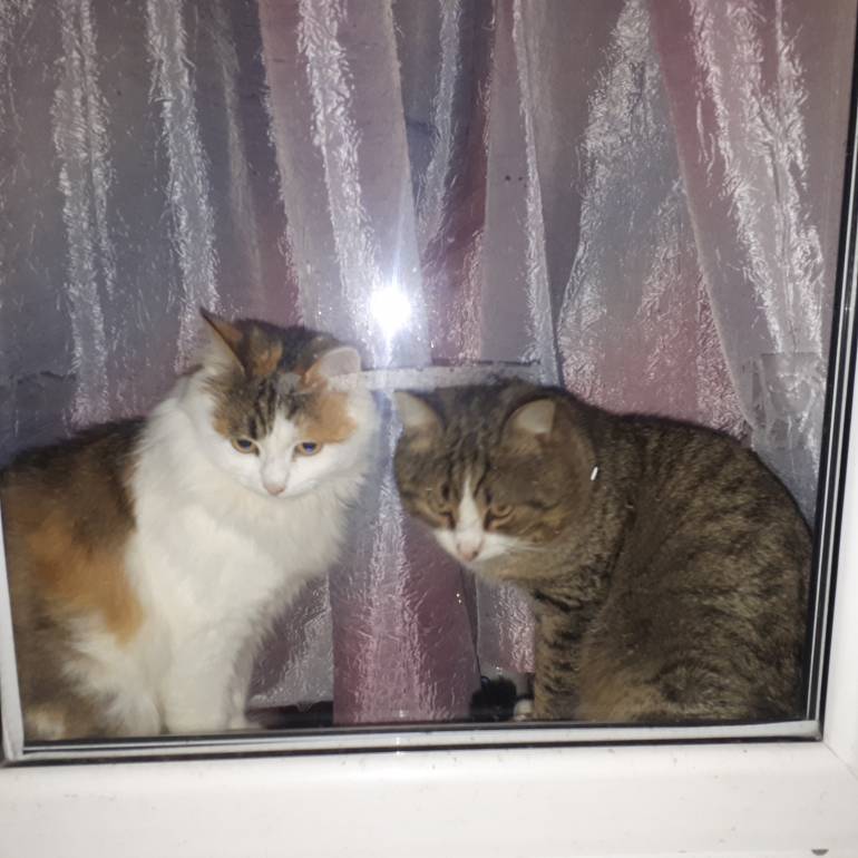 наблюдательный пункт у котиков такой. Сидят в тепле и во двор глядят. Увидели меня с пакетами из магазина и наверное угадывают, что им купили.