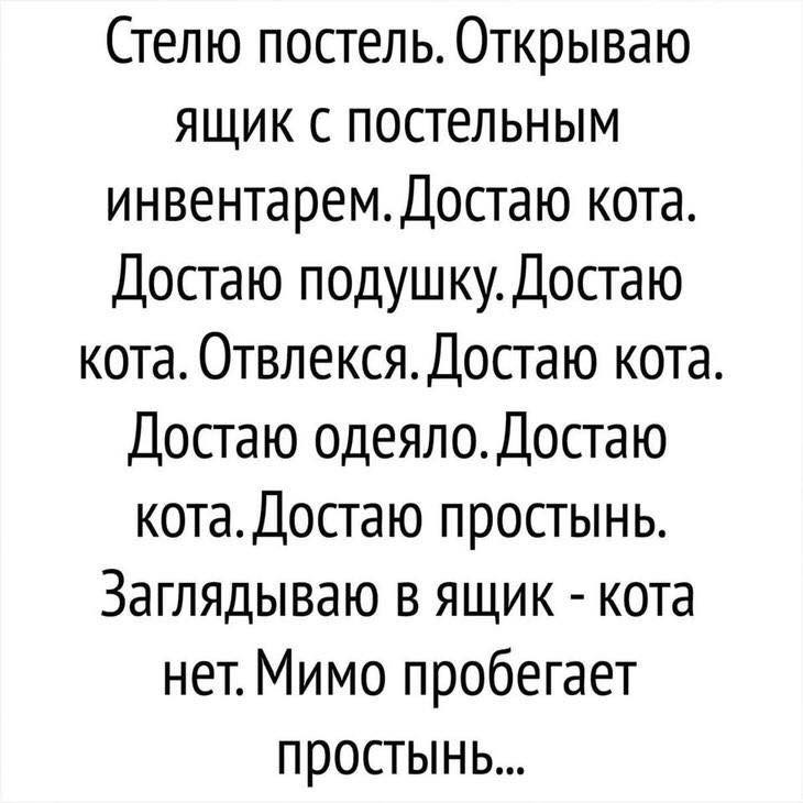 На просьбу жены повесить фотографию вбил гвоздь, перекрутил все розетки, починил стол, покрасил подоконник. Кот, который обычно спит на подоконнике, прилип. Глупенький.