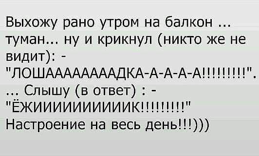 Омлет с колбасой понравился больше, чем со шпротами. Странно. Вижу в глазах жены чувство признательности. Приятно. Завтра сделаю пельмени со шпротами. Знай наших. Кондуктор в автобусе здоровается как с родным.https://vk.com/the_discover Обратил внимание, что люди перестали шугаться, когда с ними здороваешься. Но подозрительность во взгляде осталась. Сделал всю работу за 2 часа. Начальник похвалил и обещал выдать премию. Коллеги смотрят с плохо скрываемой злостью.