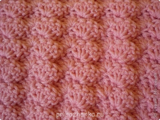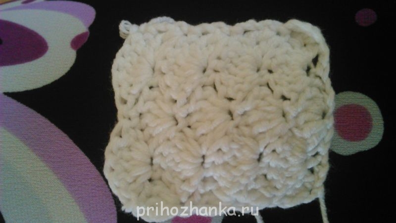 3-й ряд: 3 в.п., ст.сн, 4 выпуклых ст.сн под 4 центральных ст.сн предыдущего ряда, ст.сн,в.п.,ст.сн под в.п.