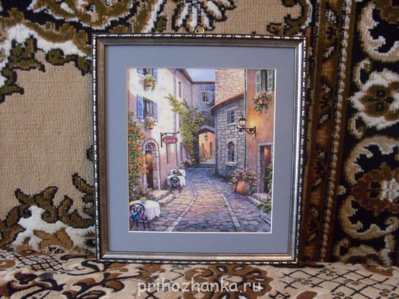 Я иногда,обычно на даче пытаюсь вышивать по напечатанному на канву рисунку,есть пара работ,но повесить их можно только на даче и то в темному углу.