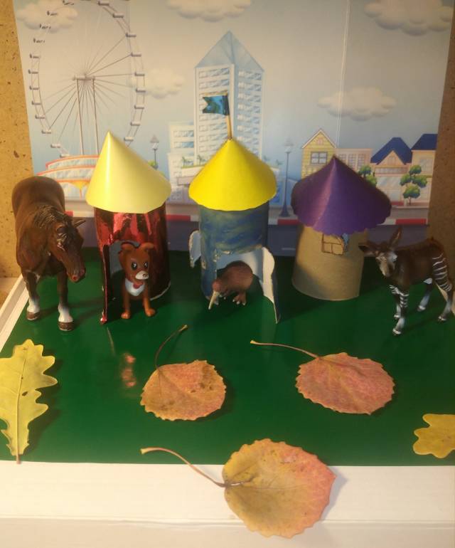 Мы с Амелией сегодня строили минидеревню для питомцев.