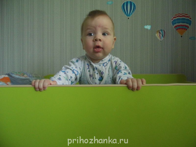 Опустили мы дно у его кроватки теперь... Потому как может уже вывалиться