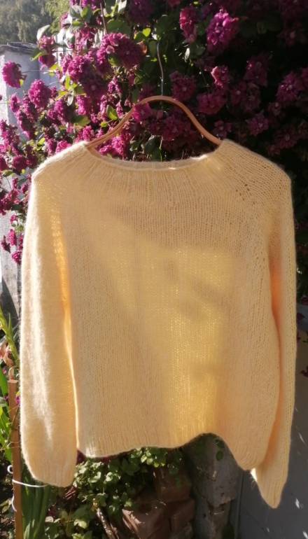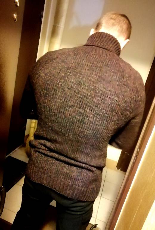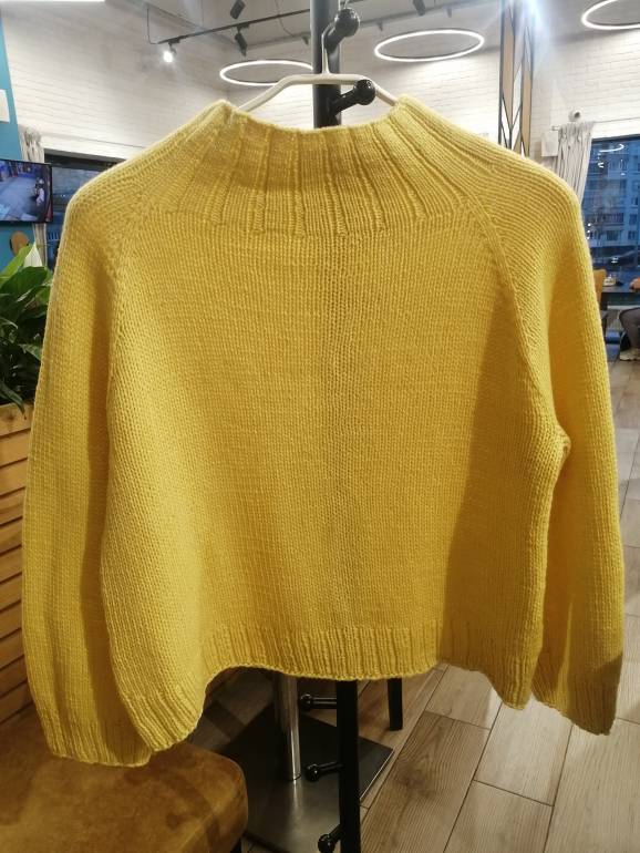 У меня несколько базовых моделей лицевой гладью, кооректикую из в зависимости от пола/роста/размера. Прошу зазчиков снять только 4 мерки со своего самого удобного свитера и приступаю к работе. Спицы подбираю в зависимости от типа бобинной пряжи - шнурочек, гребенная, кардная, букле и пр.