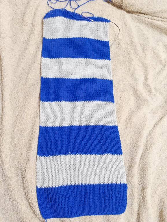 Сегодня начала вязать шарф по мотивам Гарри Поттера факультет Когтевран, для Илюши. Но всего 10 рядов, завтра продолжу, наверное.