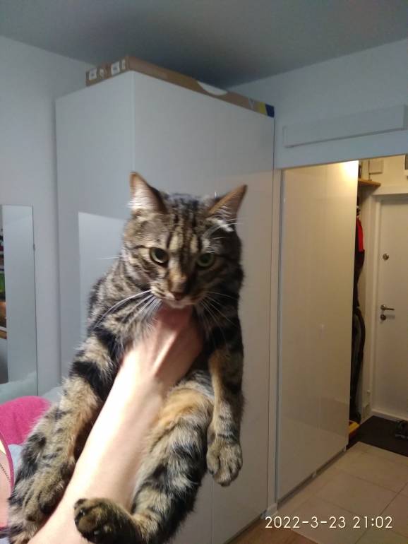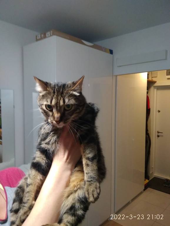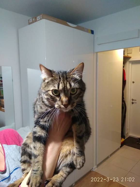 Mimoza, недовольный вид у кота, оторвали от вкусного занятия.