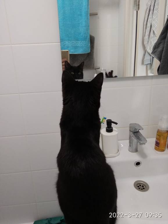 Говорят, что так кошки о своих хозяевах беспокоятся.Линда: 27 мар 2022, 18:11 А моя подсматривает за мной в дУше Раньше все сидела и ждала, когда я выйду из за шторки , а теперь смотрю- из за шторки полморды на меня смотрит