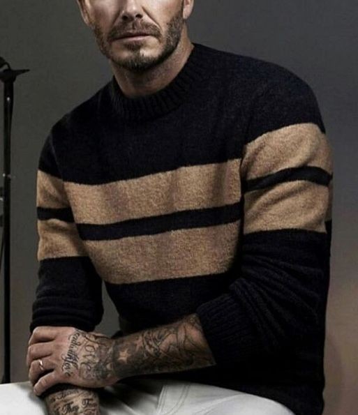 У меня сейчас в заказе мужской свитер из итальянского бэби верблюжонка, с полосками. Модель примерную покажу, моя только со стоячим воротом