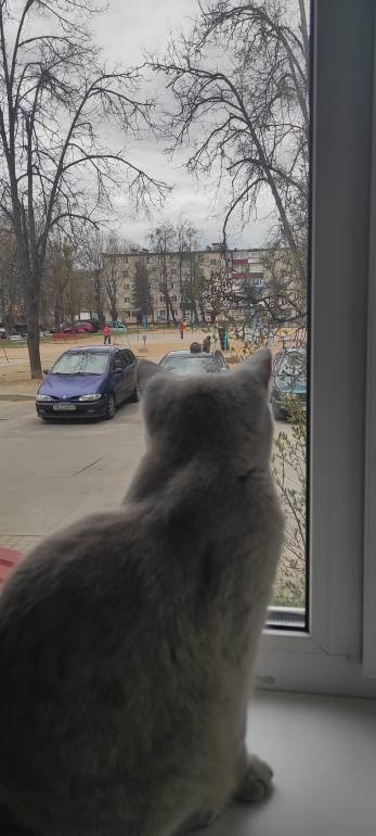 Застала Асеньку на окошке . Прямо наблюдательный пункт за своими собратьями.