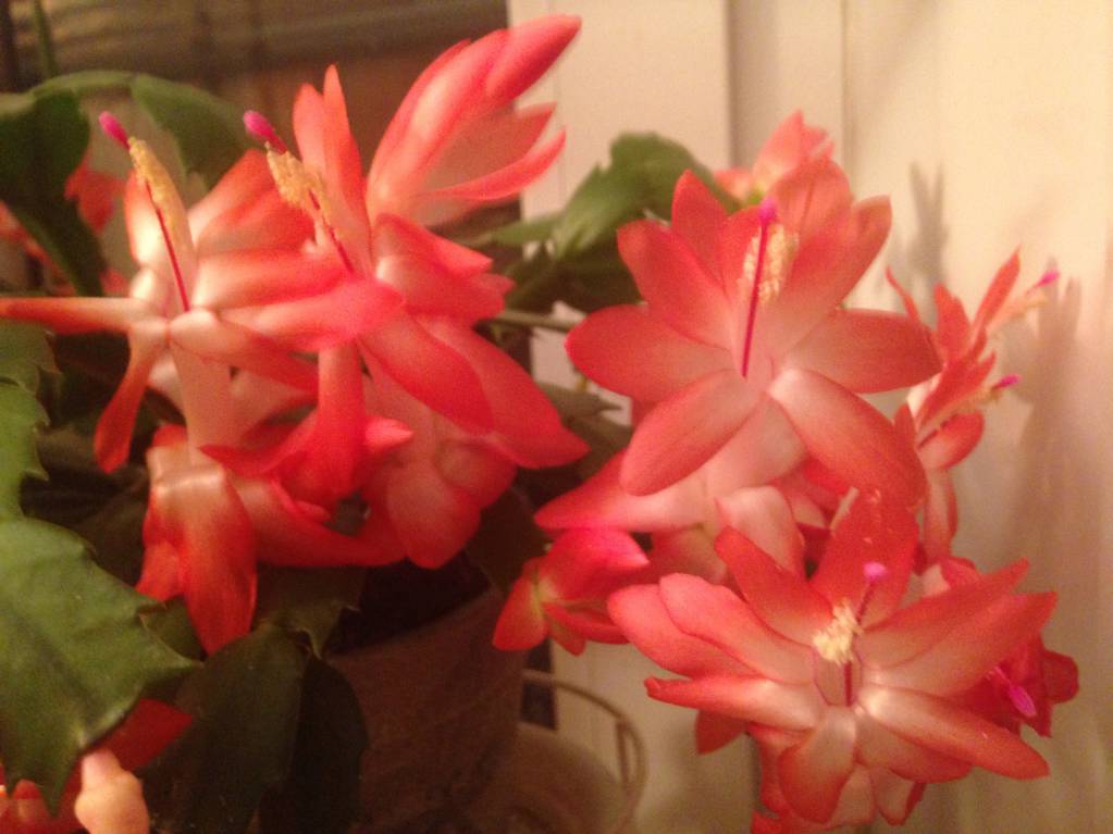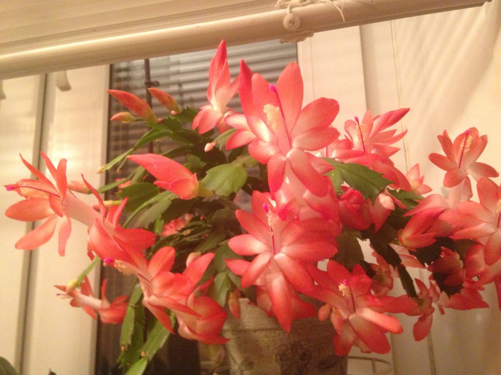 Не успела свой декабрист сфоткать. Уже почти отцвел. Что интересно, цветет всегда с одной стороны - той, что возле иконы. У меня на кухне стоит икона "Тайная вечеря", а возле нее цветок. Как я его не поворачивала, цветет только та сторона, что рядом.