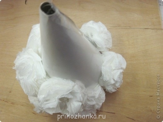 Затем (это доставляет огромное удовольствие детям) берете салфетку (туал. бум.) отрываете кусочек и ладонями скатываете в кружочек. И такими кружочками заклеиваете барашка.